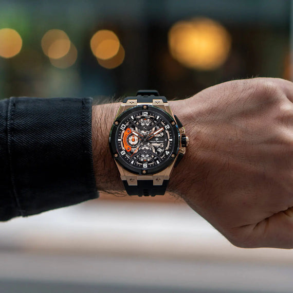 The Apex Chrono features a striking sub-second, triple-dial chronograph complication driven by a high-precision Japanese movement. Seamlessly blending luxury, style, and precision engineering - while oozing sophistication.